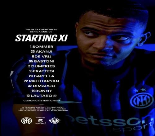 北京時間10月5日00:00,意甲第6輪的一場較量。國米坐鎮主場,迎戰克雷莫內塞。賽前,雙方的陣容公布如下: